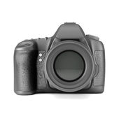 Aparat cyfrowy, obiektyw i karty pamięci na białym tle