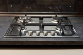 Zdjęcie "Stan czarny ceramiczny indukcyjny blat pieca z wysuwanym urządzeniem wydechowym na czysty blat z białą powierzchnią, wygodna nowoczesna technologia kuchnia bez nikogo na zdjęciu, zbliżenie" może być wykorzystywane do celów osobistych i komercyjnych zgodnie z warunkami zakupionej licencji Royalty-free. Obraz jest dostępny do pobrania w jakości wysokiej rozdzielczości do 5760x3840.