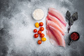 Zdjęcie "Surowy zestaw steków rybnych halibuta świeżego, ze składnikami i ziołami rozmarynu, na czarnym ciemnym kamiennym tle stołu, widok z góry płaski leżak" może być wykorzystywane do celów osobistych i komercyjnych zgodnie z warunkami zakupionej licencji Royalty-free. Obraz jest dostępny do pobrania w jakości wysokiej rozdzielczości do 5760x3840.