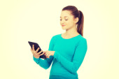 Zdjęcie "kobieta wyświetlone komputera typu tablet" może być wykorzystywane do celów osobistych i komercyjnych zgodnie z warunkami zakupionej licencji Royalty-free. Obraz jest dostępny do pobrania w jakości wysokiej rozdzielczości do 5760x3840.