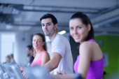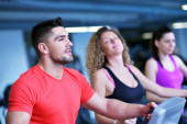 trening fitness szczęśliwa para młoda i zabawy w sport club siłownia