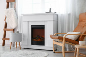 Zdjęcie "Stylowy kominek we wnętrzu nowoczesnej kuchni" może być wykorzystywane do celów osobistych i komercyjnych zgodnie z warunkami zakupionej licencji Royalty-free. Obraz jest dostępny do pobrania w jakości wysokiej rozdzielczości do 5760x3840.