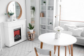 Zdjęcie "Stylowe wnętrze nowoczesnego salonu z kominkiem" może być wykorzystywane do celów osobistych i komercyjnych zgodnie z warunkami zakupionej licencji Royalty-free. Obraz jest dostępny do pobrania w jakości wysokiej rozdzielczości do 5760x3840.