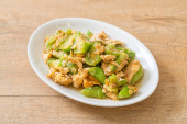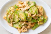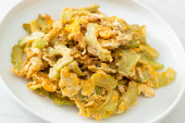 Zdjęcie "Wymieszać smażoną gorzką dynię z jajkiem na talerzu" może być wykorzystywane do celów osobistych i komercyjnych zgodnie z warunkami zakupionej licencji Royalty-free. Obraz jest dostępny do pobrania w jakości wysokiej rozdzielczości do 5760x3840.