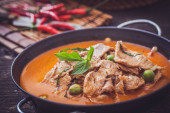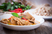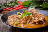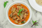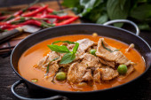 Suszona czerwona wieprzowina curry kokosowe, kuchnia tajska