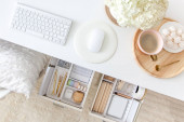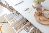 Puste nowoczesne skandi wnętrza salonu doniczkowe meble roślinne elementy dekoracyjne minimalistyczny dom