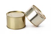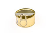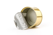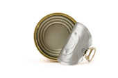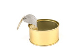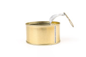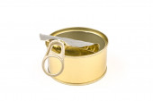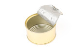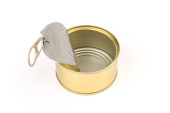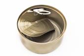 Otwarta pokrywa puszki z pustym jedzeniem, izolowana na białym