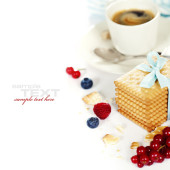 śniadanie z kawą, rogalik i dżem (łatwo usuwalny tekst)