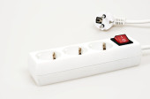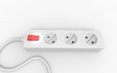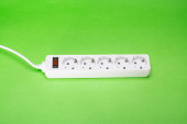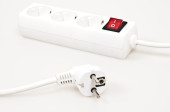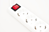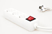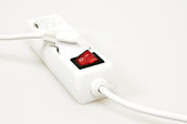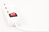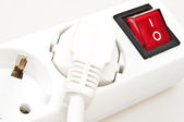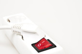 gniazda zasilania na białym tle z czerwonym przyciskiem