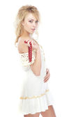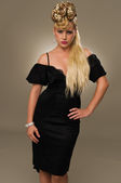 piękna blond kobieta w kolorze brązowym na szarym tle
