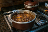 Zdjęcie "Feijoada (gulasz fasolowy) - brazylijska tradycyjna żywność (sucha wołowina, kapusta, pomarańcza, ryż, fasola)" może być wykorzystywane do celów osobistych i komercyjnych zgodnie z warunkami zakupionej licencji Royalty-free. Obraz jest dostępny do pobrania w jakości wysokiej rozdzielczości do 5760x3840.