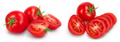 Pomidor z plastrami izolowanymi na białym tle ze ścieżką wycinania i pełną głębią pola. Zestaw lub kolekcja
