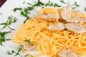 makaron z mięsa i warzywa zbliżenie smaczne danie