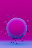 Abstrakcyjny fioletowy organiczny płyn pęcherzykowy kształty kuli lub krople na fioletowym tle, selektywne skupienie, ilustracja 3D