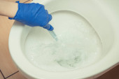 Sprzątanie pokojówki i umywalka w toalecie w domu.