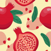 Wzór bez szwu granatu, sztuka linii. Kolorowy granat czerwony nasiona whith i liście na białym tle.