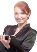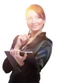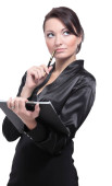 portret młodego przedsiębiorcy kobiece myślenia podczas sporządzania notatek z