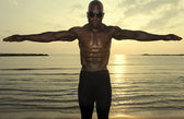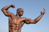 człowiek silny kulturysta doskonałe abs, barki, biceps, triceps i klatki piersiowej