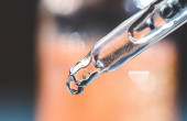 Kropla oleju kosmetycznego spada z pipety.