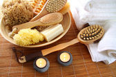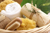 życie wciąż Spa wanna różne pędzle, gąbki, mydło, ręczniki