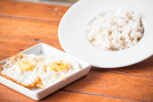 Zdjęcie "Gotowany ryż w misce z jajkiem do robienia szarlotki. Przepis krok po kroku." może być wykorzystywane do celów osobistych i komercyjnych zgodnie z warunkami zakupionej licencji Royalty-free. Obraz jest dostępny do pobrania w jakości wysokiej rozdzielczości do 5760x3840.