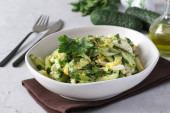 Zdrowa sałatka. Sałatka wegańska Detox Spring z kapustą, ogórkiem, zieloną cebulą i pietruszką