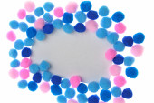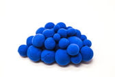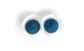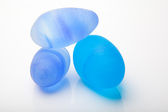 Niebieski szampon lub żel pod prysznic próbki krople na szarym tle. Niebieski żel kosmetyczny z bąbelkami.