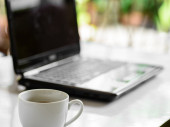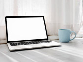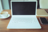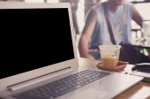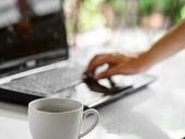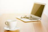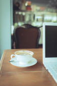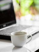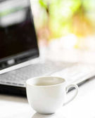 filiżanka kawy i laptop dla biznesu, selektywne koncentrują się na kawę.