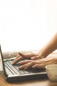 filiżanka kawy i laptop dla biznesu, selektywne koncentrują się na kawę.