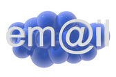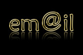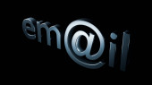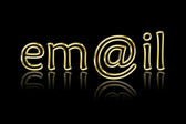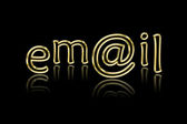 Zamknij widok z przodu niebieski metaliczny E-mail tekst na czarnym tle.