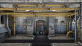 3d renderowanie. Futurystyczny korytarz. Koncepcja nowoczesnej architektury i wnętrza statku kosmicznego