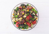 Sałatka warzywna z brokułami quinoa, ogórkiem, pomidorami i kukurydzą