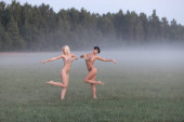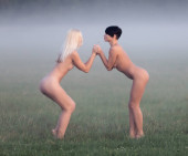 Zdjęcie "Koncepcja młodości i stylu życia. Dwie młode nagie dziewczyny blondynka i brunetka są autostopem wzdłuż wiejskiej drogi." może być wykorzystywane do celów osobistych i komercyjnych zgodnie z warunkami zakupionej licencji Royalty-free. Obraz jest dostępny do pobrania w jakości wysokiej rozdzielczości do 5760x3840.