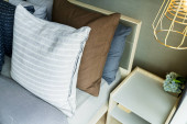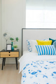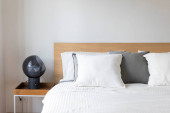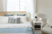 Zdjęcie "sypialnia z dużym łóżkiem w stylu skandynawskim" może być wykorzystywane do celów osobistych i komercyjnych zgodnie z warunkami zakupionej licencji Royalty-free. Obraz jest dostępny do pobrania w jakości wysokiej rozdzielczości do 5760x3840.