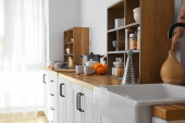 Zdjęcie "Wnętrze nowoczesnej kuchni z dużym oknem" może być wykorzystywane do celów osobistych i komercyjnych zgodnie z warunkami zakupionej licencji Royalty-free. Obraz jest dostępny do pobrania w jakości wysokiej rozdzielczości do 5760x3840.