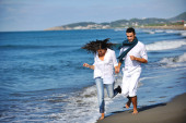 Zdjęcie "szczęśliwa młoda para baw się na pięknej plaży" może być wykorzystywane do celów osobistych i komercyjnych zgodnie z warunkami zakupionej licencji Royalty-free. Obraz jest dostępny do pobrania w jakości wysokiej rozdzielczości do 5760x3840.