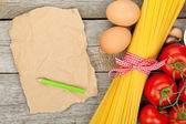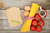makaron, pomidory, jajka i przyprawy