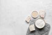 Skład ze świeżymi i suchymi drożdżami na jasnym tle
