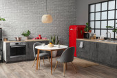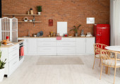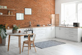 Zdjęcie "Wnętrze nowoczesnej kuchni z pustymi ramami" może być wykorzystywane do celów osobistych i komercyjnych zgodnie z warunkami zakupionej licencji Royalty-free. Obraz jest dostępny do pobrania w jakości wysokiej rozdzielczości do 5760x3840.