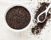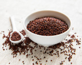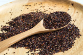 Nasiona komosy czerwonej, czarno-białej na tle włókienniczym