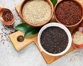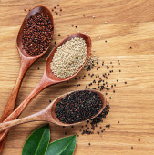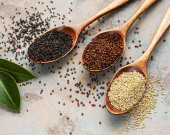 Nasiona komosy czerwonej, czarnej i białej na konkretnym tle