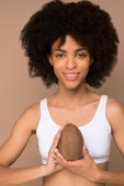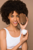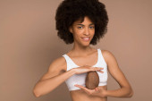 Młoda, śliczna, kręcona mulata z plastrami pomarańczy
