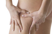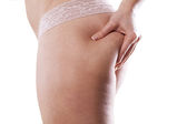 bliska kobieta szczypty tłuszczu na pasie, na białym tle