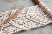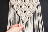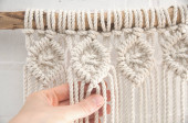 Mural ścienny Boho wykonany z naturalnych nici bawełnianych przy użyciu techniki makramy do dekoracji wnętrz i ślubów w procesie produkcji