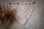 Mural ścienny Boho wykonany z naturalnych nici bawełnianych przy użyciu techniki makramy do dekoracji wnętrz i ślubów