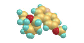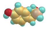Tymina jest nukleobazą pirymidynową, czyli uracylem, w którym wodór w pozycji 5 zastępuje się grupą metylową. Ilustracja 3D