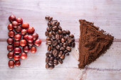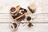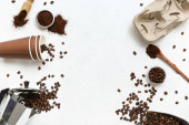Ramka wykonana ze smacznej kawy tureckiej i fasoli na jasnym tle