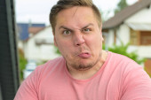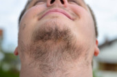 Profil młodego mężczyzny po dwudziestce, patrzącego w prawo