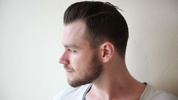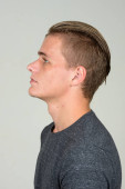 Profil młodego mężczyzny po dwudziestce, patrzącego w lewo