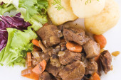 posiłek stek duszone wołowiny z ziemniakami i świeże sałatki